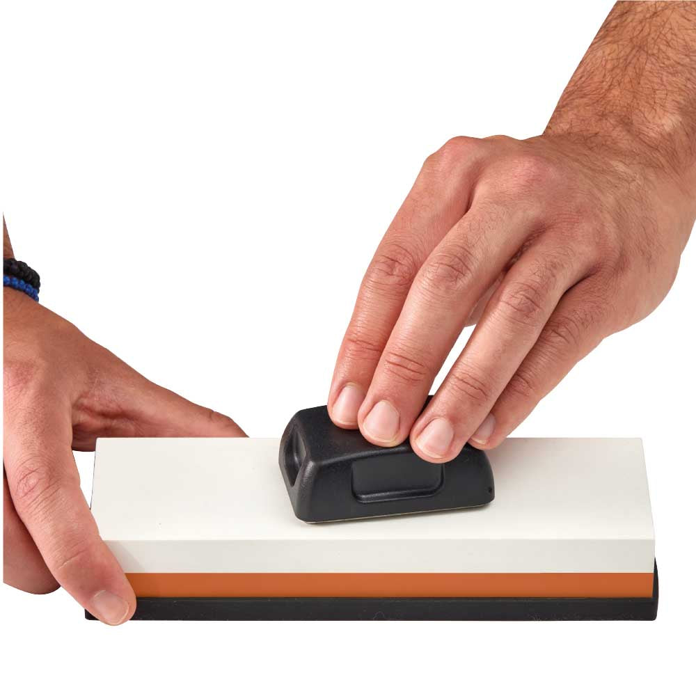 • Includes a knife angle guide for precision and safety and stone flattener to remove wear and tear from the stone
